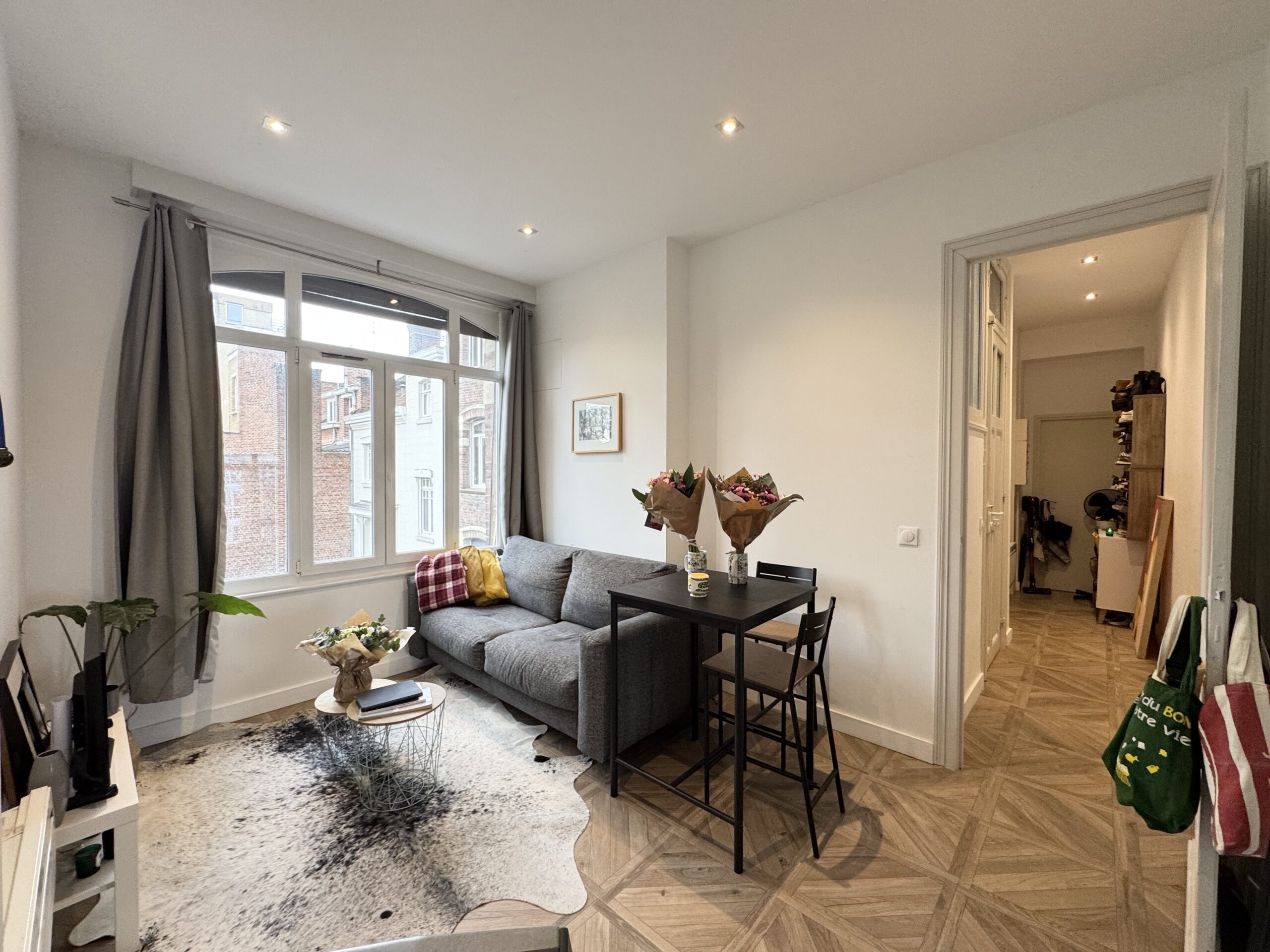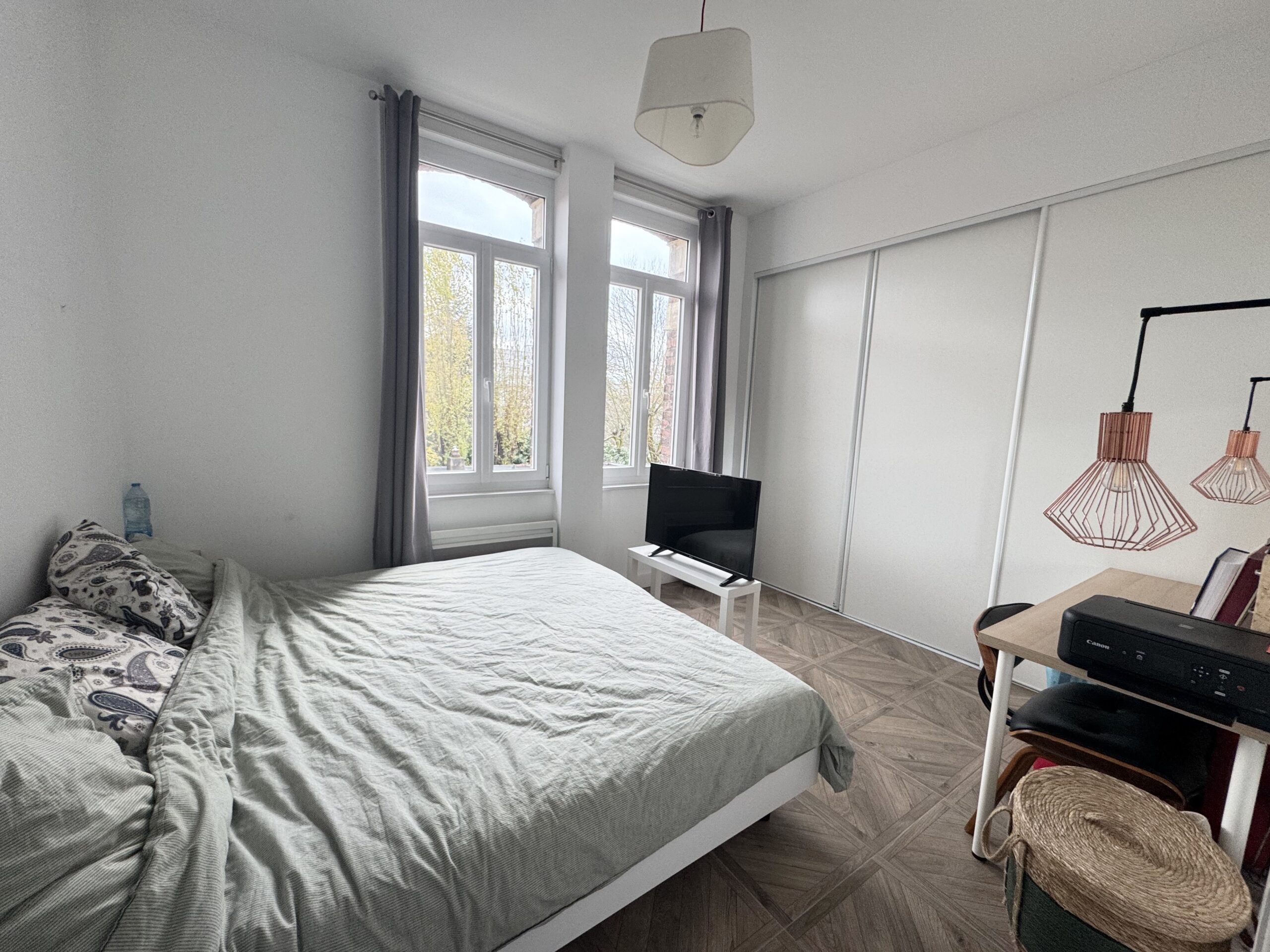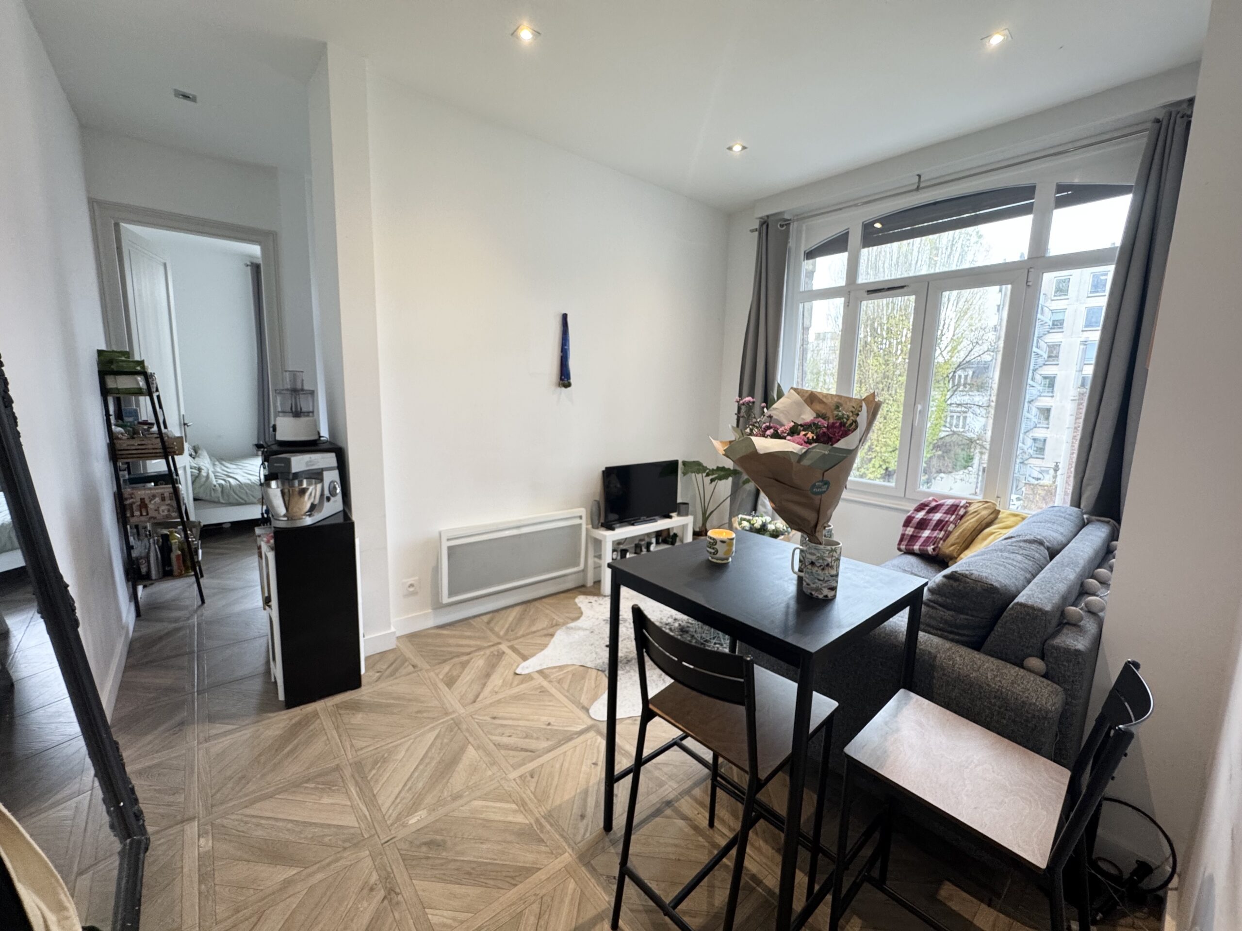 Très beau T2 meublé de 40m2 situé avenue de la République à Marcq-en-Baroeul. Cet appartement au 2ème étage, est composé d’une entrée, d’un salon/séjour lumineux avec canapé lit, d’une belle cuisine semi-ouverte aménagée et équipée. Une grande chambre avec un grand dressing et une salle de bain avec douche, meuble vasque, et des WC.