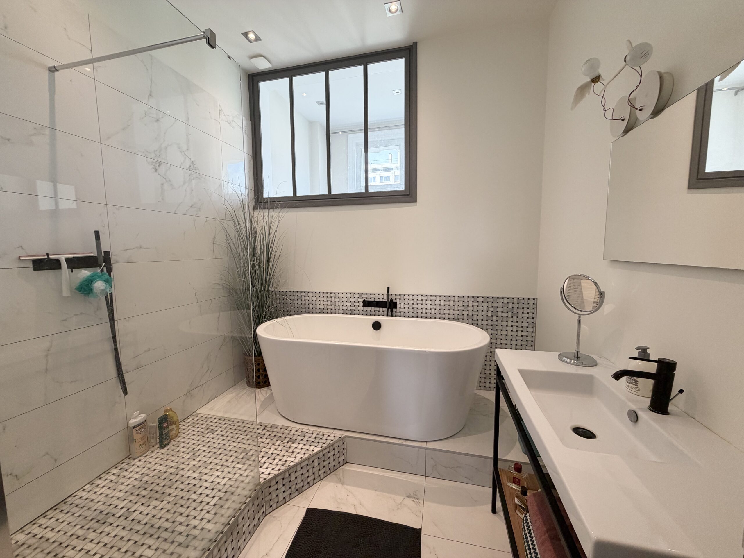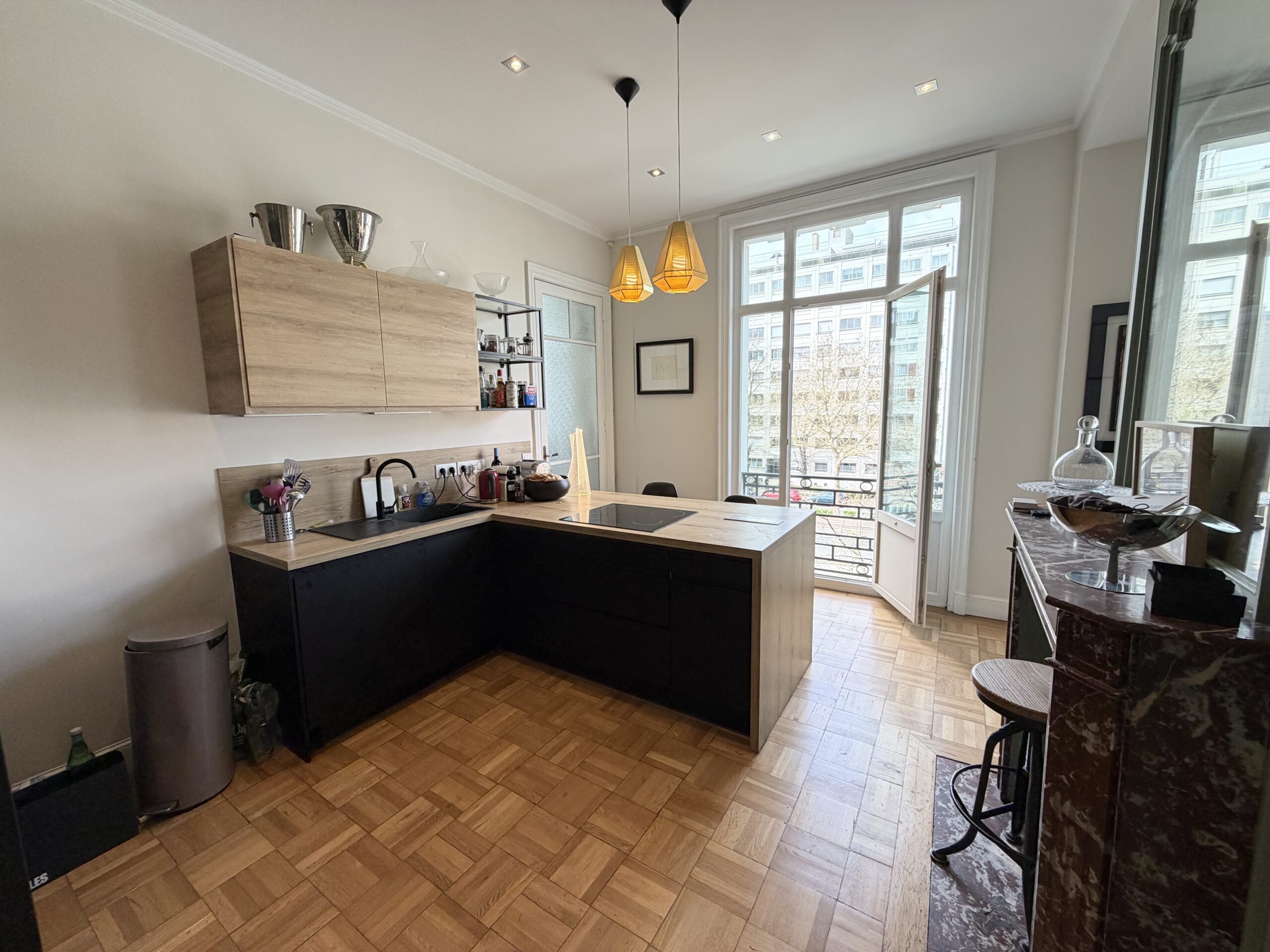Très beau T3bis meublé de 120m2 situé avenue de la République à Marcq-en-Baroeul, au pied du tramway Saint Maur. Cet appartement au 2ème étage avec ascenseur, est composé d’une grande entrée avec placards, d’un double salon/séjour lumineux, d’une grande cuisine semi-ouverte entièrement aménagée et équipée (plaques, four, micro-onde, frigo, congélateur, lave-vaisselle). Une grande chambre parentale avec dressing, une deuxième chambre avec beaucoup de rangements et une troisième pièce pouvant faire office de bureau. Une belle salle de bain avec baignoire, douche à l’italienne et meuble vasque. Enfin, un espace buanderie avec machine à laver, sèche linge et des WC séparés.