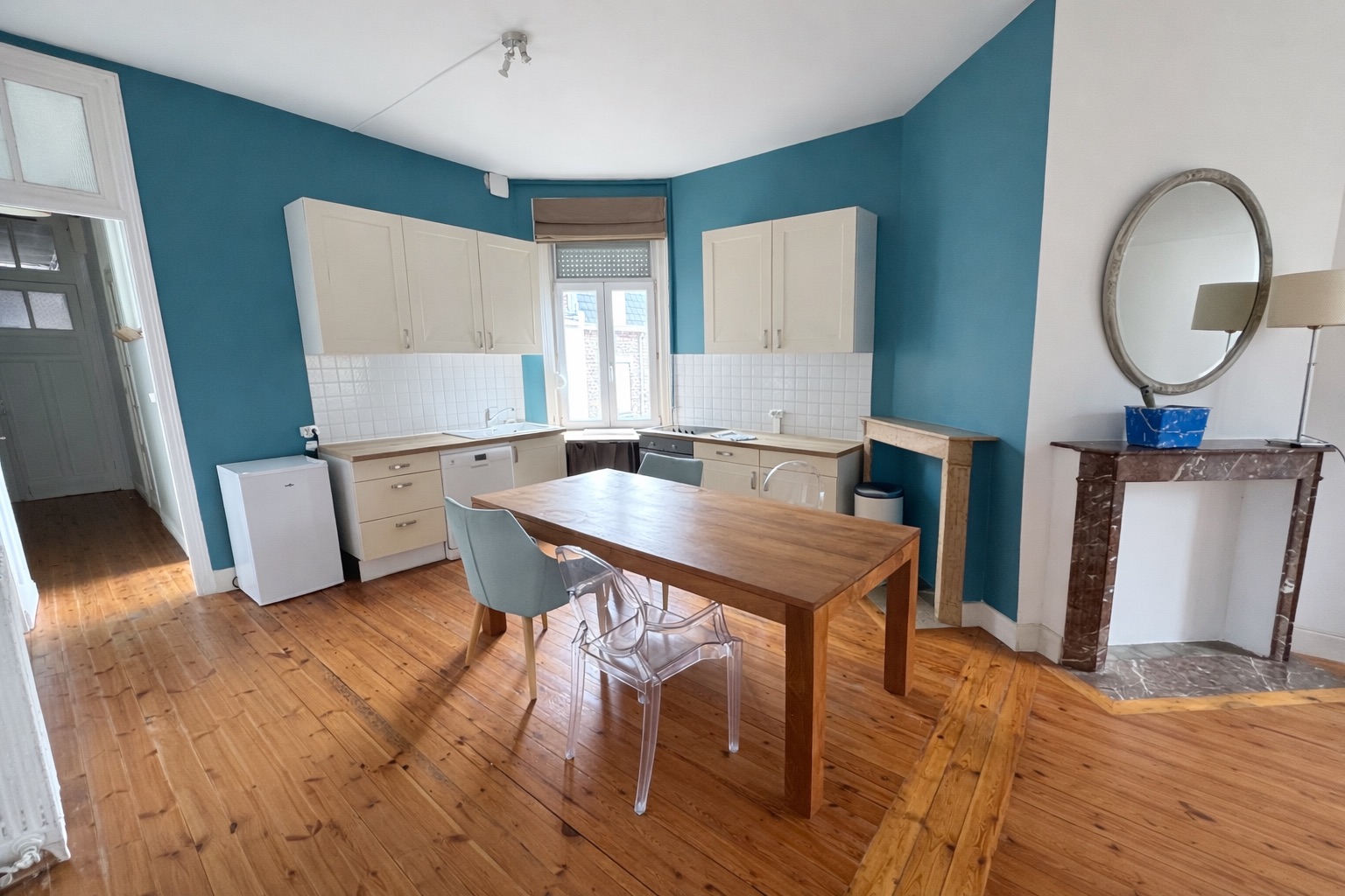 Joli T2 meublé de 60m2, situé 655 avenue de la République à Lille. Cet appartement est composé d’une entrée, d’une grande pièce de vie lumineuse avec cuisine ouverte entièrement aménagée et équipée (plaques, four, lave-vaisselle, frigo). Une belle chambre. Une salle de bain avec baignoire, meuble vasque et machine à laver, des WC séparés.